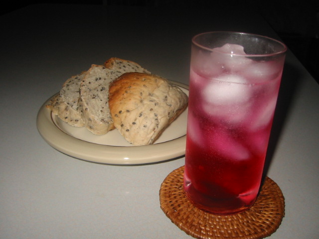 無農薬で栽培した自家製の赤紫蘇で作ったジュースだそうで、一升瓶でいただきました。