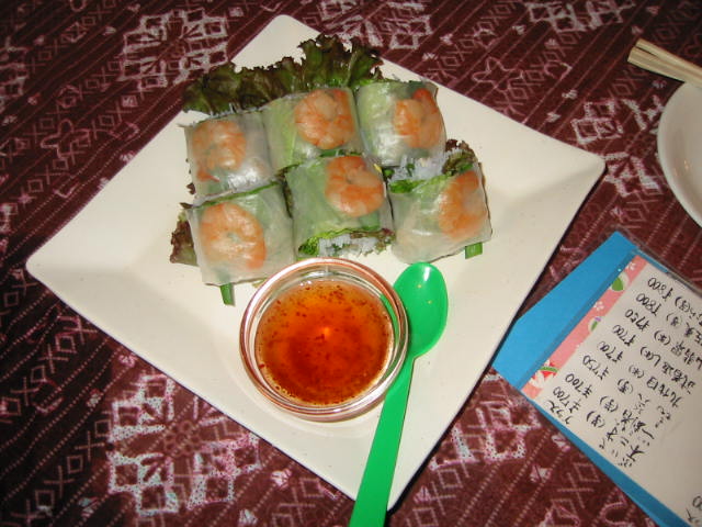 最初にオーダーした生春巻き。他にもたくさん食べたのにアルコールが入るとつい、写真を撮るのを忘れるのだよね。
