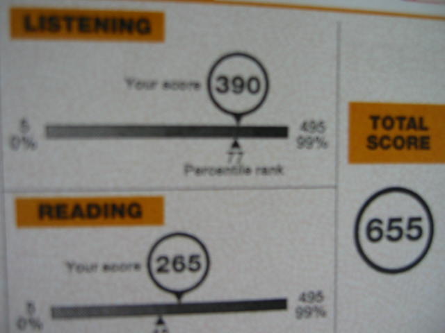 ・・・・彼女英語に不自由がないのは実生活でバリバリ使っていたからで、試験的なことに今までまるで興味がなかったからTOEICスコアについてな~~~んにも知らないのです。
